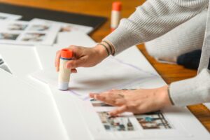 - Arrange them on a canvas, large piece of cardboard, or frame to create a meaningful collage.